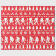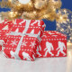 Weihnachtsfeiertage hässlich Sweatstil Geschenkpackung, gemustert mit Sasquatches, Tannen und Schneeflocken in festlich rot-weiß