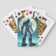 Sasquatch steht unter einem Vollmond umgeben von Bergen und zeigt ein Titan-Exoskelett elektronischer Schaltungen und LED-Lampen...
