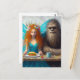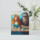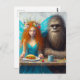 Eine Fee in einem blauen Kleid und Sasquatch treffen sich für eine picknickfantasievolle Kunst, die von der KI geschaffen wurde