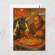 Sasquatch und ein Einhorn essen Pizza Postkarte