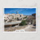 Postkarte der alten Architektur und der Höhlenhäuser der Stadt Sassi di Matera in der Region Basilicata in Italien mit einem weißen Rand und dem Text "Matera".