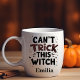 Moderne Halloween individuelle Name Kaffee-Tasse-Design bietet "Can't Trick This Hexe" Text in schwarzer Typografie. Macht für das perfekte Geschenk für sie - für Ihre Freundin, Freundin, Schwester oder sogar Ihren Nachbarn. Perfekt, um sie sich ganz besonders zu fühlen, ihr Vertrauen zu stärken und ein einzigartiges und bequemes Geschenk zu bekommen!