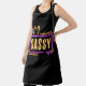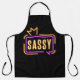 Koche, backe oder grille mit Flair in der Sassy Neon Glow Schürze! Mit dem Wort SASSY, das in hellen orange- und violettfarbenen Neon-Tönen leuchtet und einem lustigen Kronen-Akzent, bringt diese Schürze Selbstvertrauen und Persönlichkeit in deinen Küchenstil. Perfekt für jeden, der seine Einstellung beim Zubereiten von etwas Köstlichem zeigen möchte, ist sie eine kühne und spielerische Art, sauber und stilvoll zu bleiben. Großartig für Heimköche, Bäcker, Barbecue-Meister oder jeden, der glaubt, dass jedes Rezept ein bisschen SASS verdient.