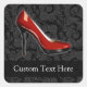 Mit diesem schicken roten Damenschuh-Design, personalisiert mit Ihrem Namen oder einem anderen beliebten Schuhgeschäft oder Sprichwort, zeigen Sie Ihr Stilgefühl. Einzigartig, stilvoll und hochmodisch, roter Stiletto Pump Pump, Lackleder in kräftigem, kräftigem Rot, mit seitlicher und unterer Vorführung. Schwarz-dunkelbrauner Damast-Hintergrund aus Holzkohle. Alle Designs Copyright © 2012 www.CuteComfy.com Dieses Design ist als komplette Sammlung erhältlich!