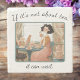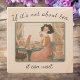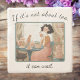 Retro-Stil Stone-Untersetzer mit einer Teeliebhaberin, die ihren Tee schmeckt, zwei entspannte Katzen in der Nähe, Spitzen-Vorhänge und eine versaute Nachricht für Teenager