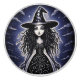 Dieser lustige, eigenartige Knopf wird Ihrem Raum eine Touch Magick hinzufügen, mit diesem fantasievollen Aquarell einer whimsical Sassy kleinen Hexe.