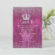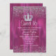 Chic Girl's 16 . Geburtstag Geburtstagsfeier Einladung getan in einem orchid pink Satin-Look. Die Grafiken des silberfarbenen Glitzer und eine Krone schmücken die Einladung. Der gesamte Text ist für den besonderen Tag Ihrer Tochter personalisiert. Sehr schicke Einladung für ein elegantes Party.