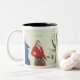 Satirical Cartoon, der den Schlüssel darstellt Zweifarbige Tasse