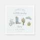 Rustikales Cowboy Thema Baby Dusche Papier Serviette mit der Darstellung eines Cowboy-Stiefel, Hut, Kaktus, und Schlange. Im Text steht: "Auf dem Weg ist ein kleiner Cowboy."