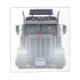 Ein schwarzer Sattelschlepper mit Scheinwerfern