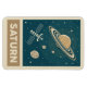 Eine Retro-Abbildung des Saturn mit einem Satelliten.