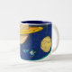 Der Planet Saturn und sein Mond Titan in einem Zeitungsbild im Stil des frühen 20. Jahrhunderts.