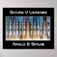 Ein zusammengesetztes Bild aller Saturn 5 Raketen, inklusive der Apollo Moon Landungsmissionen und der Skylab 1 ersten U.S. Raumstation im Orbit. Skylab war der letzte Start des gewaltigen Saturn V, nach dem Erfolg von Apollo 17 zum Mond. Saturn V war das größte, schwerste und leistungsstärkste Trägerfahrzeug und hat den phantastischen Erfolg, niemals eine Crew oder Nutzlast zu verlieren. Es wurde im Marshall Space Flight Center in Huntsville, Alabama entworfen. Von 1967 bis 1973 fanden die Startveranstaltungen statt.