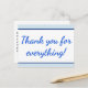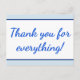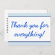 Dieses gepflegte, elegante Dankeschön Postcard Design enthält die Meldung "Danke für alles!" auf der Vorderseite, zusammen mit einer personalisierten Botschaft auf der Rückseite. Es könnte genutzt werden, um jemandem zu bieten, der an einer Hochzeit, einer Beerdigung oder einem anderen Ereignis teilgenommen hat.