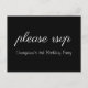 Dieses gepflegte, elegante UAWG-Postkartendesign enthält die Meldung "Bitte uAwg" auf der Vorderseite sowie einen individuell anpassbaren Eventnamen. Es enthält auch ein anpassbares UAWG auf der Rückseite, sowie eine anpassbare Adresse, an die die ausgefüllten RSVP-Karten gesendet werden sollen. RSVP-Karten wie diese können verwendet werden, um herauszufinden, wer an einer Babydusche, einem Hochzeitsempfang, einer Geburtstagsparty oder einer anderen Feier teilnehmen wird.