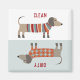 Mit diesem lustigen Hundedesign werden Sie sich nie mehr fragen müssen, ob der Geschirrspüler wieder sauber oder schmutzig ist. Niedliche kleine Dackel Würstchen oder Dackel Hunde in Wollstrickbekleidung. Originelle Kunst von Nic Squirrell.
