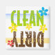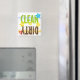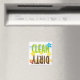 Der Magnet dieses Geschirrspülers ist digitale Illustration und Textdesign. Sauber ist in sauberem Kalkgrün und Dirty ist in dunkelbraun.