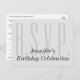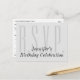 Dieses saubere und respektable R.S.V.P. Postkartendesign enthält vorne die Meldung "R.S.V.P.", zusammen mit einem benutzerdefinierbaren Anlassnamen. Es enthält auch ein benutzerdefiniertes UAWG auf der Rückseite, das der Empfänger ausfüllen kann, sowie eine benutzerdefinierte Adresse, an die die ausgefüllten RSVP-Karten gesendet werden sollen. RSVP-Karten wie diese könnten vielleicht genutzt werden, um herauszufinden, wer an einem Hochzeitsempfang, einem Weihnachtsfeier, einem Party in der Rente oder anderen Feierlichkeiten teilnehmen wird.
