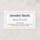 Dieses schlichte und saubere Design der Visitenkarte weist eine doppelte Grenze mit einer gestrichelten Linie dazwischen auf. Name, Beruf und Kontaktdaten können personalisiert sein. Es könnte von einem berufliche wie einem Innenarchitekten, einem Architekten oder einem Innenarchitekten benutzt werden.