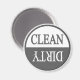 Sauberer dreckiger, runder Geschirrspüler Magnet