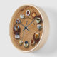 Tassen von schwarzem Kaffee mit Bohnen als Uhr zwölf bunte verschiedene Tassen Kaffee für jede Stunde des Tages oder der Nacht. Sie können ihn mit Ihrem eigenen Text oder Namen personalisieren oder leer verlassen