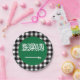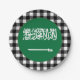 Paper Teller: Rustikale Saudi-Arabien Party Teller mit Saudi-Arabien-Flagge umgeben von schwarz-weiß Büffel karierte Muster - Liebe mein Land, festliche Dekoration, nationale Patrioten / Sportfans