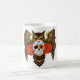 Eine braune große Hornkeule mit einem Tag des toten Zuckerschädels und rote Rosen in Orange.