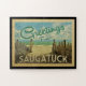Diese Gruß-Von Saugatuck Vintage Postcard-Design zeichnet sich durch einen Sandstrand mit türkisblauem Meerwasser und über dem Meer aus, einen blauen Himmel mit duftigen weißen Wolken. Im Vintage Reisen Stil.