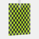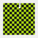 Ein lebendiges Schachbrettmuster mit abwechselnden neon-gelben und schwarzen Quadraten erzeugt ein auffallendes geometrisches Design, das einen kühnen und energiegeladenen Ton vermittelt.