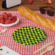 Säuregrün-schwarzes Schachbrettmuster Pappteller
