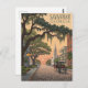 Charmante Savannah, Georgien-Straße mit historischen Zuhause, moosbewachsenen Eichen und warmen Abend-Licht.