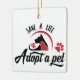 Minimalist pet adoption graphic featuring a red silhouette of a cat, paw prints, and a protective arch, symbolizing love, care, and compassion—perfect for animal rescue and adoption awareness designs.