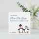 Diese individuell anpassbare "Save the Date" Karte ist der perfekte Begleiter für Ihre Hochzeit im Pinguinstil