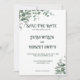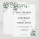 Eine wunderschöne "Save the Date" Karte in einem schlichten eleganten Design, das mit Eukalyptus-Blätter dekoriert ist.