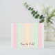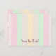 Pastellstreifen schmücken diese elegante 50. Geburtstagskarte "Save the Date". Beide Seiten haben eine tiefe lila Schrift. Sehr elegant! Sie können den Text leicht nach Namen, Alter, Datum, Ort usw. ändern. Die passende Briefmarke für Postkarten ist zazzle Produkt 172369265050547052. Alle Rechte vorbehalten © 2014 Alan & Marcia Socolik.