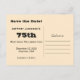 Ein Foto einer Silhouette eines Fischerbootes bei Sonnenuntergang, mit einem lebhaften orangefarbenen Himmel, schmückt diese einzigartige und lustige Postkarte zum 75. Geburtstag "Save the Date". Das Gegenteil hat schwarze Buchstaben auf Elfenbeinhintergrund. Sie können den Namen, das Alter, das Ereignis, das Datum usw. einfach ändern. Matching Porto Briefmarke für Postkarten ist zazzle.com Produkt 172091251412801076. Original Foto von Marcia Socolik. Alle Rechte vorbehalten © 2014 Alan & Marcia Socolik.