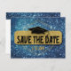 Save the Date Abschluss Gold Blue Grad Cap Postkarte