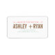 Diese maßgeschneiderten Rücksendeadressen-Aufkleber bieten Ihnen Ihre Hochzeitsdetails in modernem Stil. Die meisten Designelemente können je nach Wahl/Vorliebe neu formatiert/verschoben/gelöscht werden.