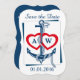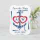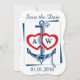 Save the Date Karte mit Anchor, Schönes Design in Blau, Rot und Weiß. 2-seitige Bauweise. Personalisieren Sie sowohl die obere als auch die Rückseite mit Ihren Monogrammen, Datum, Ort, Namen und anderen Texten. Fun nautical design in blau, rot und weiß.