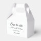 Save the Date, personalisierte benutzerdefinierte Skripte, Kalligrafiettext Hochzeit Ankündigung elegante niedliche und lustige Gefälligkeitsboxen. Vollständig anpassbarer Skriptschwarz und weißer schlichter Farbhintergrund.