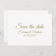 Save the Date, benutzerdefinierter Text mit eleganter Hochzeitsankündigungskarte, Imitate mit Goldskripttext, weißem Hintergrund