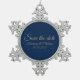 Save the Date, benutzerdefinierte Skripttext Hochzeit Ankündigung Snowflake Pewter Weihnachtsschmuck. Elegantes marineblau und Imitate goldene Textsornamente.