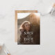 Save the Date Hochzeitserklärung. Moderne minimale Typografie über vollblütiges Foto. Komplett vielseitiges Do-it-yourself Style Layout. Stellen Sie Größe, Stil und Platzierung aller Textelemente einfach ein. Zur Anzeige wird ein schwarzer Ober-Filter verwendet, aber Sie können ihn entfernen oder ändern, indem Sie auf den erweiterten Anpassungsmodus klicken.