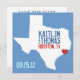 Passen Sie diese stadtspezifische Save the Date-Karte an. Klicken Sie einfach auf den Button "Anpassen", um das Herz an den Standort Ihrer Stadt in Texas zu verschieben, und passen Sie Ihre Namen an. Vergessen Sie nicht die passenden Briefmarke: