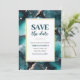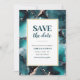 Save the Date Einladung mit aquamariner grüner und goldener Alkoholtupfer Kunst. © Mini Moi Prints