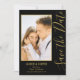 Save the Date Black Gold Stilvolle Script Moderne Hochzeitskarten mit schwarzem Hintergrund und eigenem Foto. Personalisieren Sie Ihren Text, indem Sie den Text in den dafür vorgesehenen Textfeldern bearbeiten. Entwickelt für Sie von ©Evco Studio www.zazzle.com/store/evcostudio