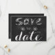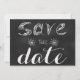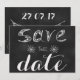 Eine "Save the Date" Karte auf schwarzer Brett-Hintergrund für die Leute, die ein wenig Rand und ein wenig Nostalgie kombiniert. Einfach und bis zum Punkt. Ideal auch für den Lehrer, der den Knoten bindet.