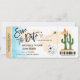 Destination Cancun, Mexiko Hochzeitsreise Boarding Ticket Gold Flugzeug Save the Date mit Herz und Flugzeug Icon mit Cacti