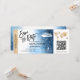 Destination Beach Wedding Boarding Pass Ticket Gold Flugzeug Save the Date mit Kreuzfahrtschiff Icon mit tropischen Blätter. QR-Code hinzufügen