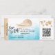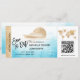 Destination Beach Wedding Boarding Pass Ticket Gold Flugzeug Save the Date mit Kreuzfahrtschiff Icon mit tropischen Blätter. QR-Code hinzufügen